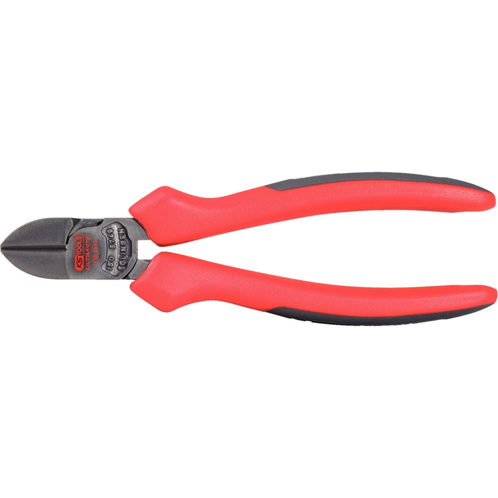 Met snijkant (radiotang) · Rechte, plat-ronde bek, met brandergat · Grijpvlakken getand · Snijkanten extra gehard, hardheid snijrand ca. 60 HRC · Speciale gereedschapsset, oliegehard en getemperd Tang verchroomd