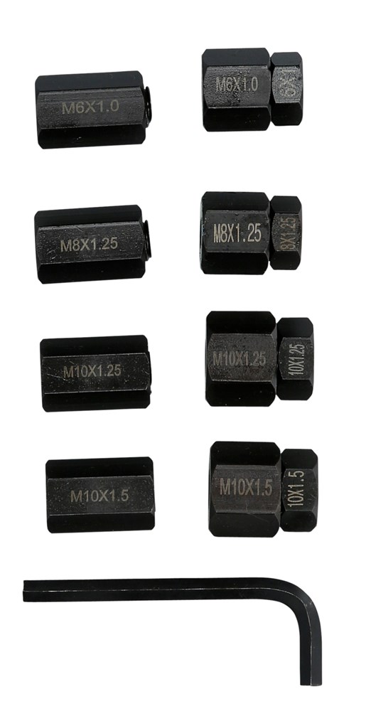 - Geschikt voor de meest gangbare tapeindafmetingen: M6x1,0 - M8x1,25 - M10x1,25 - M10x1,5