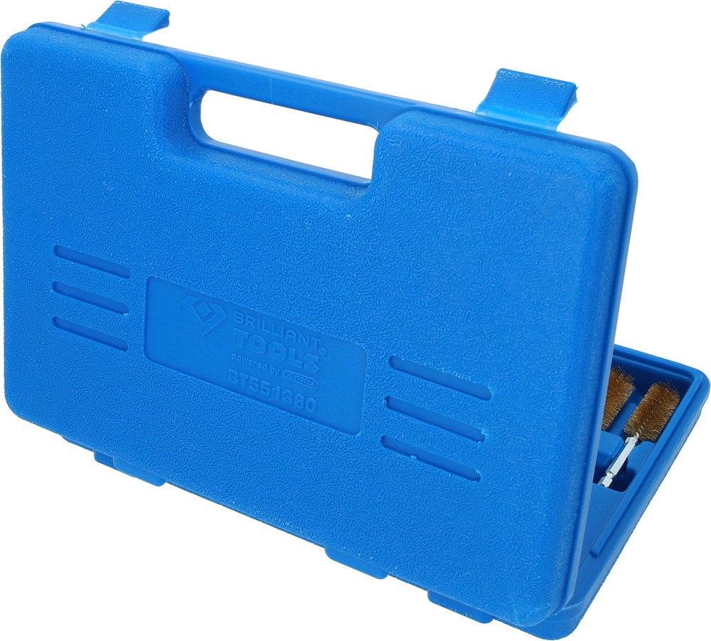 3 staalborstels, met messingcoating voor verwijderen van verbrandingsresten bij schachten voor de injectorbehuizing