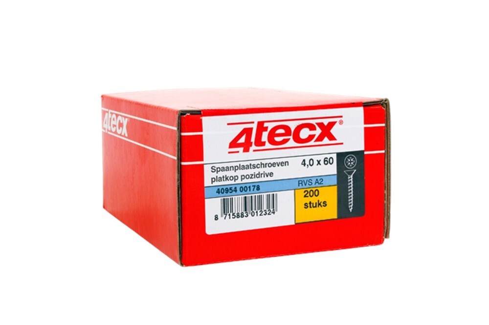 4tecx RVS spaanplaatschroef platverzonkenkop Pozidriv 6,0 x 40 Stuk