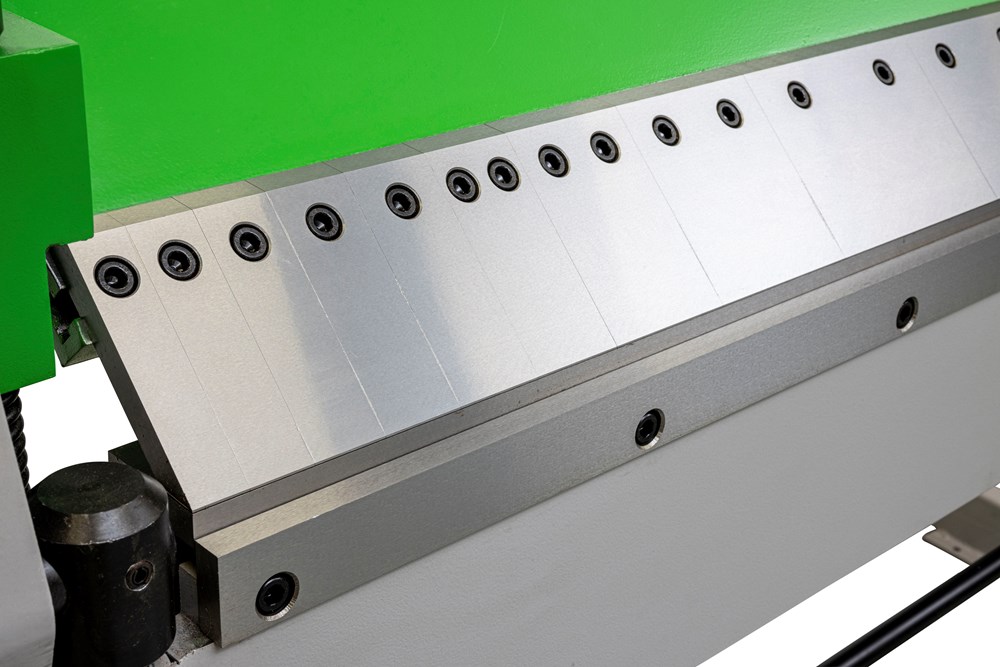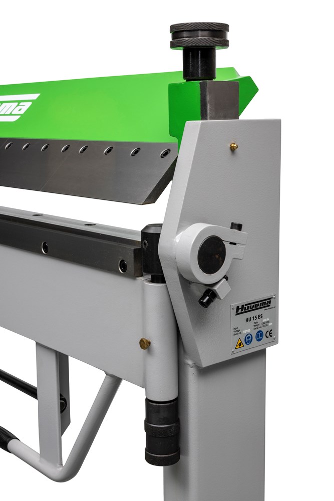 Zwaar uitgevoerde zetbank. Het mes van de bovenbalk is uitgevoerd met uitneembare segmenten. De klemming van het werkstuk gaat middels een voetpedaal, waardoor beide handen vrij zijn. De zetbank is uitgevoerd met een cilinder en verstelbaar ondermes, waardoor het zetten van plaatwerk soepel verloopt. Europees design.