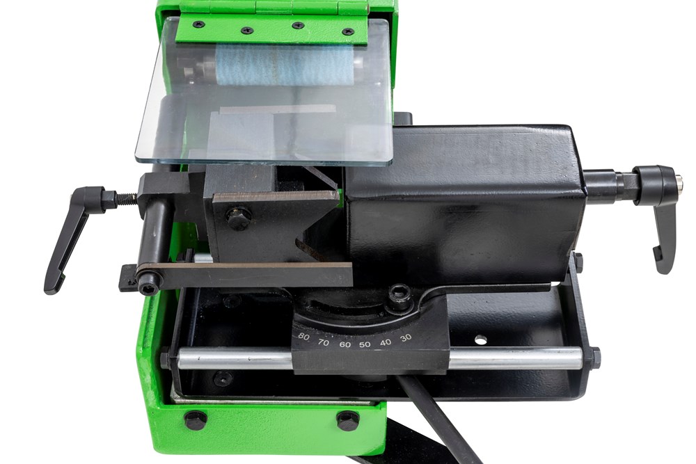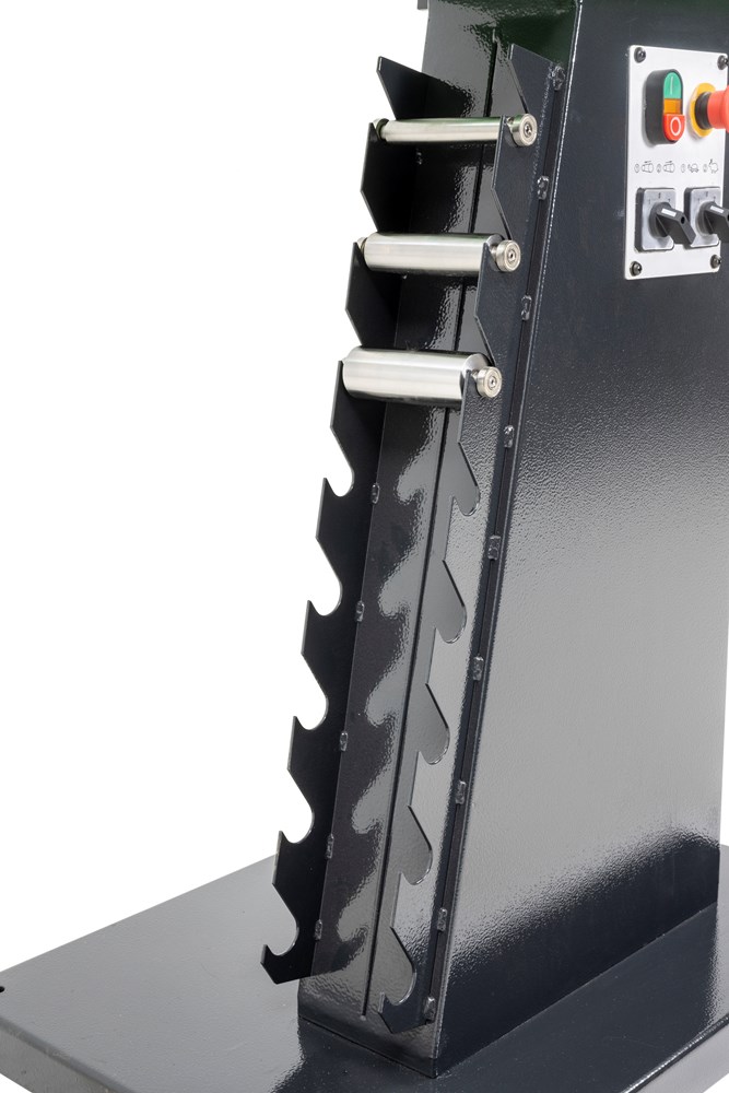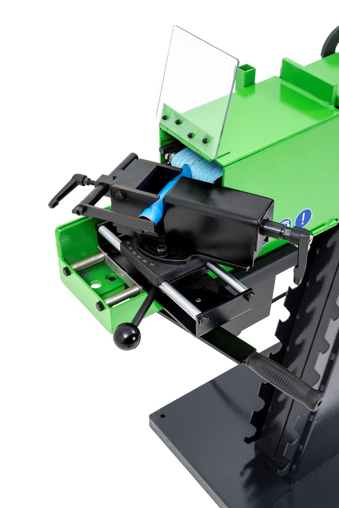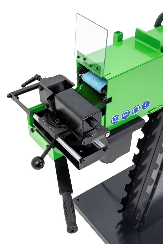De machine heeft 3 bedienvlakken: vooraan voor buizen (met buizenklem), bovenaan voor vlakslijpen en achteraan voor rondslijpen (met werkstuksteun) Buisuitslijper: voor diverse metalen buizen en profielen Hoekinstelling buizenklem van 30 tot 90° Eenvoudige klemming en efficiënte werking met hefboomhendel. Prismabek met aanslag, instelbaar zonder sleutels. Sterke motor met 2 snelheden voor verwerken van zowel staal als inox. Snel wisselen van draairichting en snelheid met keuzeschakelaars. Kan aangesloten worden op een stofafzuiging dankzij de afzuigmonden. Gemakkelijke wissel van de schuurband en slijprollen. Veiligheden: Voorzien van een aparte noodstop en afzonderlijke start / stopknop Nullastspanning Wegklapbare veiligheidsafscherming. Geschikt voor: Buizen en klassieke slijpwerkzaamheden. Ateliers met beperkte ruimtes Werkplaatsen, onderhoudsdiensten, scholen en opleidingcentra.