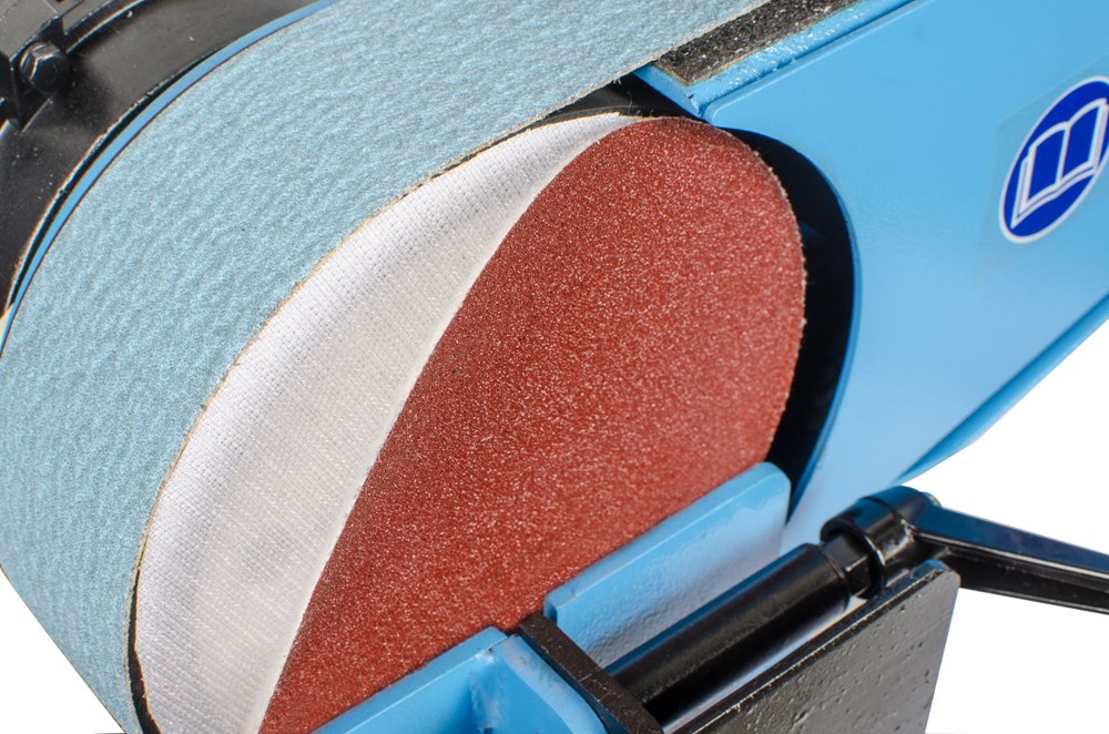 Universele band- en schijfschuurmachine met verstelbare arm (tafelmodel) met hoge prestaties. Zeer geschikt voor gebruik (en bevestiging) op een werkbank.
