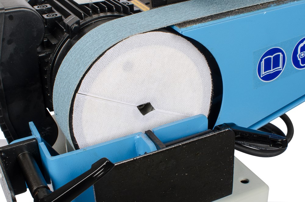 De schuurbandspanning van deze compacte machine is handmatig verstelbaar, zodat een parallelle bandloop kan worden bereikt.