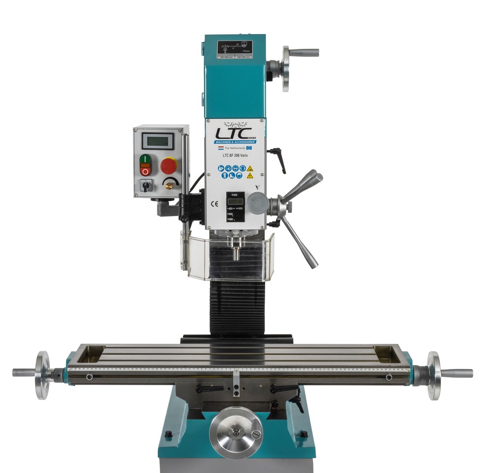 Boorfreesmachine met aandrijfriem voor lichte verspaning en modelbouw.