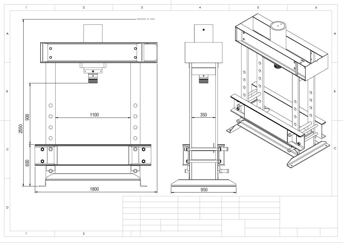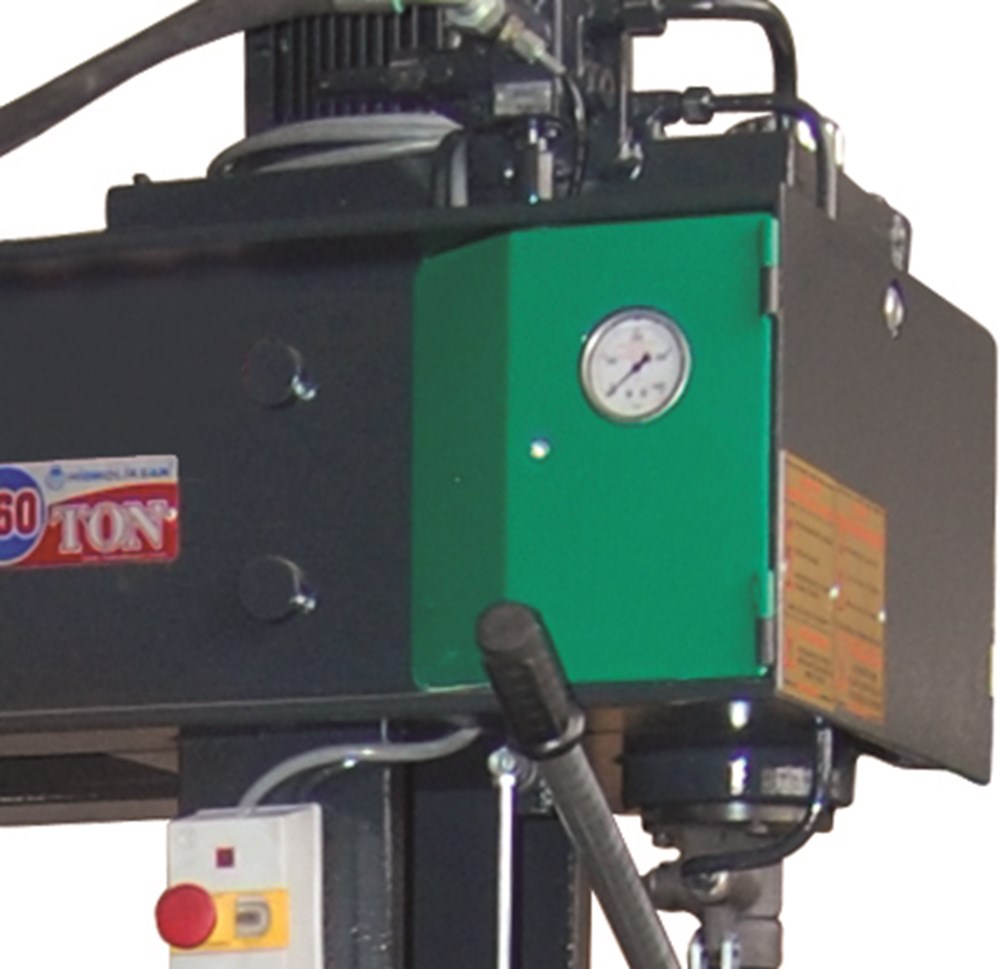 De hydraulische werkplaatspers zowel handmatig als hydraulisch bedienbaar. De tafel is hydraulisch verticaal verplaatsbaar. De cilinder is horizontaal verplaatsbaar.
