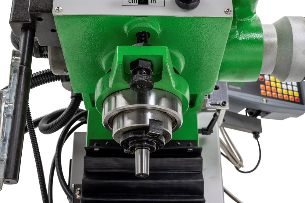 - Kantel- en zwenkbare kop voor schuin of horizontaal frezen en boren.